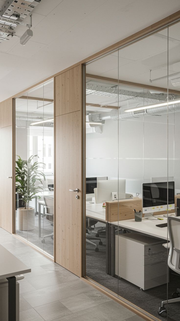 Frameless and framed glass partitions for offices and commercial spaces, combining transparency with functionality.